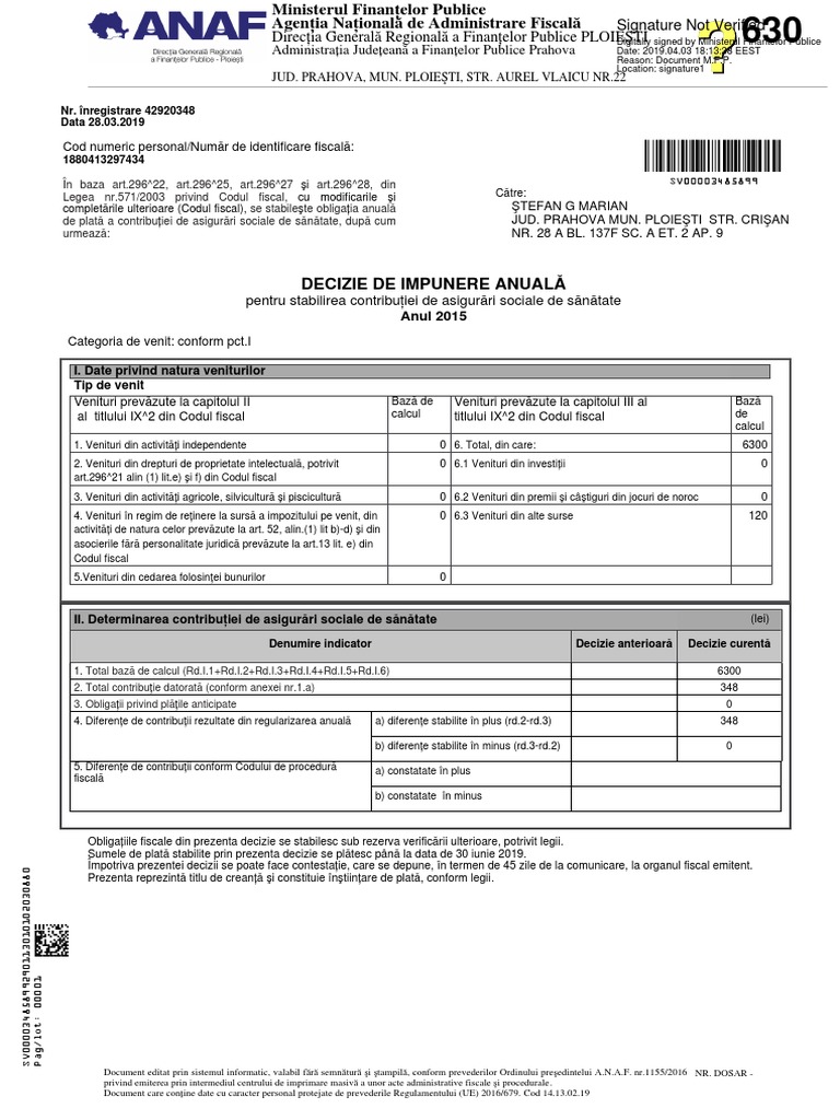 Noua Forma A Declaratiei 630 Decizie De Impunere Anuala Pentru Stabilirea Contributiei De Asigurari Sociale De Sanatate Fara Contabilitate