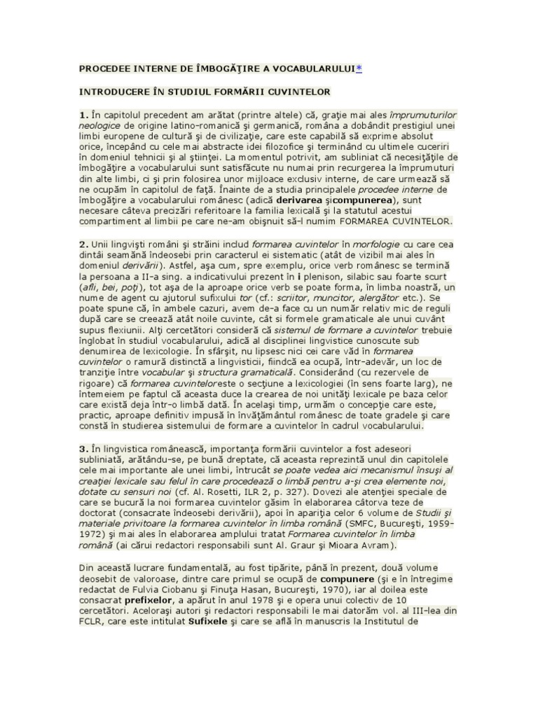 Doc Formarea Cuvintelor Caldare Ana Academia Edu