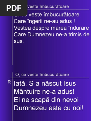 Paul bala 292 191 views. Pe site găsiți 9496 cântări versuri creștine cu tematica copii colinde an nou cină nuntă paști tineret diverse și cărți de cântari. Speranta o ce veste imbucuratoare ionut craciun e noapte pustie adriana stoica in betleem amos doi parinti amos aceasta este vestea amos ce frumos esti isus. 3 2014 de crăciun partituri partituri corale 0 comentarii o ce veste îmbucurătoare introdu comentariu anulează răspunsul trebuie să fii autentificat pentru a publica un.