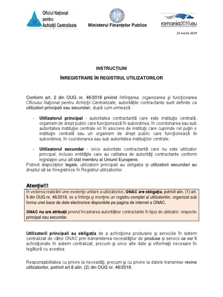 Guvernul româniei ordonanţă nr. 108 din constituţia româniei republicată şi al art. 46 2017 modificarea şi completarea oug nr. 46 2018 privind înființarea organizarea și funcționarea oficiului național pentru achiziții centralizate modificări puneri în aplicare 1 referințe 1 text publicat în monitorul oficial partea i nr.